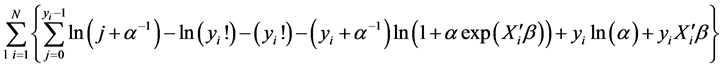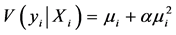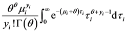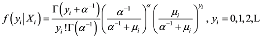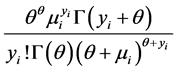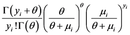stead of assuming as before that the distribution of Y, (i.e., sampled An. arabiensis aquatic larval habitat parameters) were Poisson, we now assumed that Y had a negative binomial distribution. We relaxed the assumption about equality of mean and variance (i.e., Poisson distribution property), since in our models the variance of negative binomial was equal to m + km2, when k ³ 0 was a dispersion parameter. The maximum likelihood estimation method was used to estimate k as well as the parameters of the regression models for log(m). Since the Poisson regression model can be generalized by introducing an unobserved heterogeneity term for observation