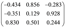 eigenvalues of [1.14 × 10−6, 7.72 × 10−6, 1.48 × 10−3], and an eigenvector matrix of