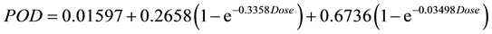 where POD again stands for the processed optical density, Dose is the radiation absorbed dose in gray, and F and S stand for the arbitrarily named “faster” and “slower” components respectively. This fitting was performed with the Prism statistical software package [Version 6.0d, GraphPad Software, La Jolla, CA], from which the fast and slow terminology comes. An alternative curve fitting program calls the two-phase association curve a Double Asymptotic Exponential B with Offset 2D function (http://zunzun.com).