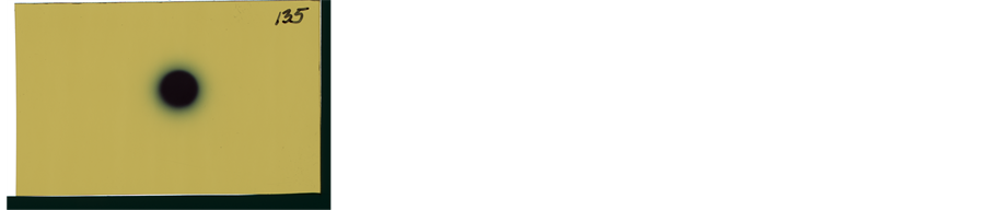A typical film image is shown in Figure 1. An area slightly larger than that of the film was scanned. The red, green and blue channels of a rectangular region of this image surrounding the source are shown in Figure 2. The red, green and blue channels were each converted to optical density and the locus of points in RGB space was plotted using the Color Inspector 3D plug-in (http://rsb.info.nih.gov/ij/plugins/color-inspector.html) to ImageJ. The full-color optical density image and the locus of those points in RGB color space are shown in Figure 3.