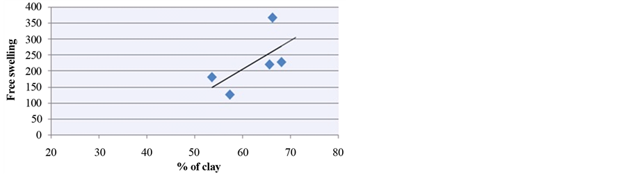 Liquid limit of bentonite depends on the net interparticle repulsive forces [26] [27] of atom between clay particles and the strength of interlaced atoms that responsible for montmorillonite swelling where Figure 5 represent free swelling with percentage of clay ore bentonite.