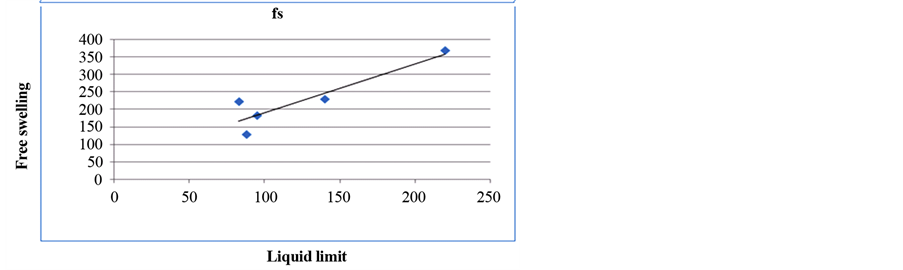 Figure 6. Shows increase in liquidity limit with an increase in the free swell.