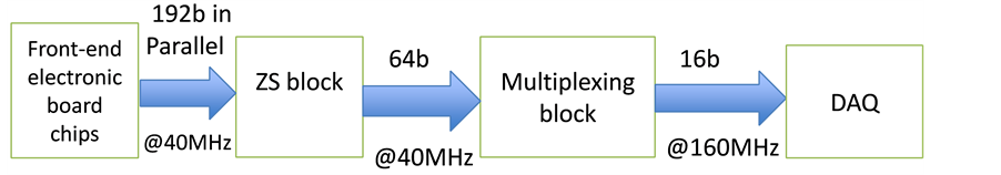 It is clear that the top-down design, which is written in VHDL and Verilog mainly, consists of data processing module, Zero Suppression component and multiplexing component.