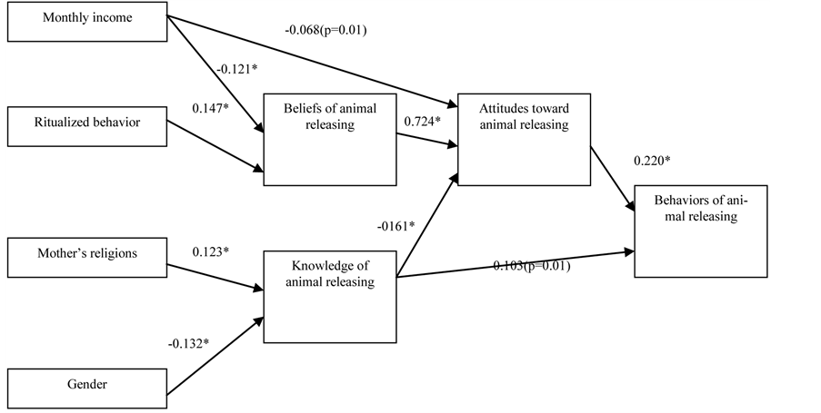 Figure 2. Path analysis of knowledge of animal releasing.