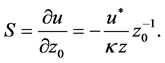 Sensitivity function S shows changes in u due to variations in z0 and is evaluated in the vicinity of some basic value of the parameter z0. In general, several basic values can be selected to cover some range of changes in z0. Let’s calculate the sensitivity function for z = 50 m. Typical value of u* is 0.2 m·s−1, therefore