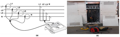 Figure 3 shows (a) the circuit diagram of the analyzer on the substations, (b) the analyzer connected to the industrial site during a measurement session.