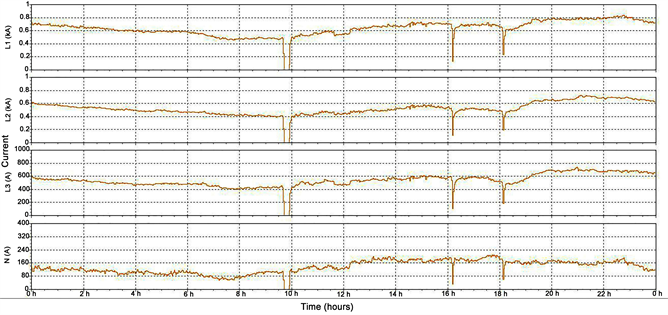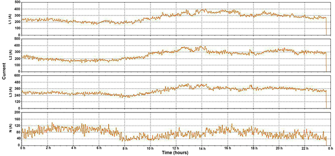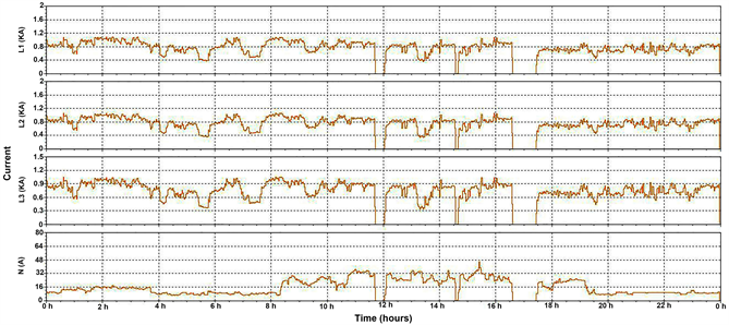 Figure 11 shows the evolution of the current in 24 hours at the industrial substation.