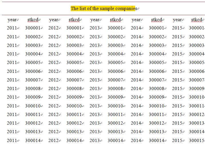 The total sample is from 2009 to 2015, and the total sample is screened according to the following principles: 1) In view of the speculation atmosphere of new stock market is serious in China’s stock market, and investors are keen to “hit the IPO” resulting in the returns rate of new stock frequently fluctuate. So in the annual sample, we eliminate companies listed less than one year. 2) According to the stock information content calculation method, we exclude companies with less than 30 weekly yielding rates. 3) Eliminate samples with missing data of corporate governance or financial data. 4) Taking into account the measurement of news coverage data, the number of companies with more than 100000 media articles or less than 10 media articles is excluded from the annual data. After the above four-fold screening, we got the final 1310 valid samples. The annual distribution of the samples is as Table 1, and industry distribution is presented in Table 2.