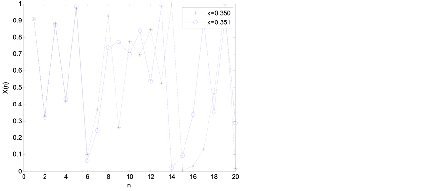 is drawn in Figure 2. There is suitable sensitivity to initial condition.