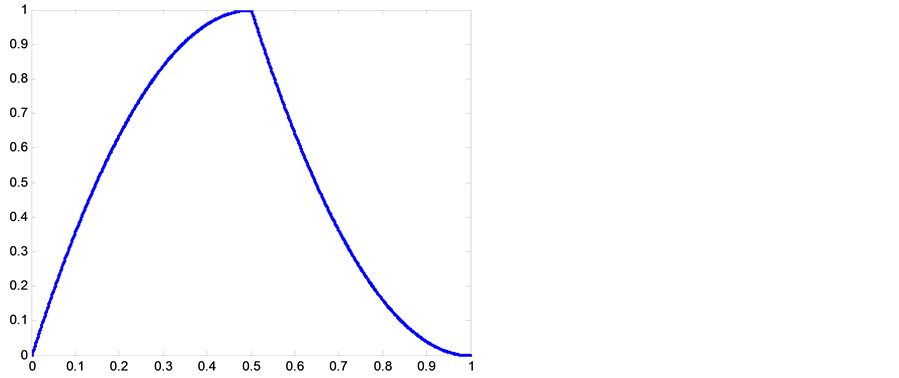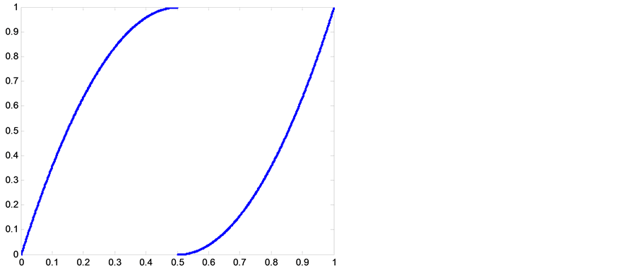 to be a Lebesgue process is that the absolute value of slops must be greater than unity all over the domain [12] . That is, the absolute of derivatives of two branches over the range must be greater than one, Equation (3).