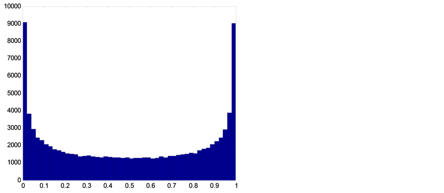Figure 13. Histogram of logistic map iterations for r = 4.
