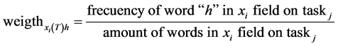 Equation (12) should be applied for fields x1 and x2, based on cosine text distance, where k represent the amount of terms including in each text.