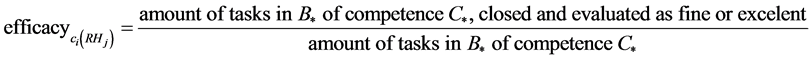 Step 4. For each competence and each human resource, calculate the human resource performance indicators by considering the associated tasks previously discovered. Some indicators are based on rough sets theory.