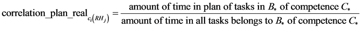 Step 4. For each competence and each human resource, calculate the indicators just like previous algorithm but the two last indicators are different.