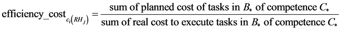 We introduce different indicators in order to evaluate efficiency and the efficacy of project members during the task execution [4] . The efficacy deal with the quality of task execution and efficiency evaluate the task execution process respect to the time and the resources used.