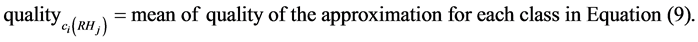 ・ The quality of the approximation of a set of objects X, which represents the relative frequency of objects that belong to class X and are correctly classify.