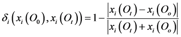 1) To define the indiscernibility relation between objectswith Equation (11).