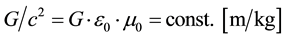 Thus the gravitational constant G itself certainly has something in common with the speed of light. It is possible to convert the gravitational constant G by extrapolating c2: