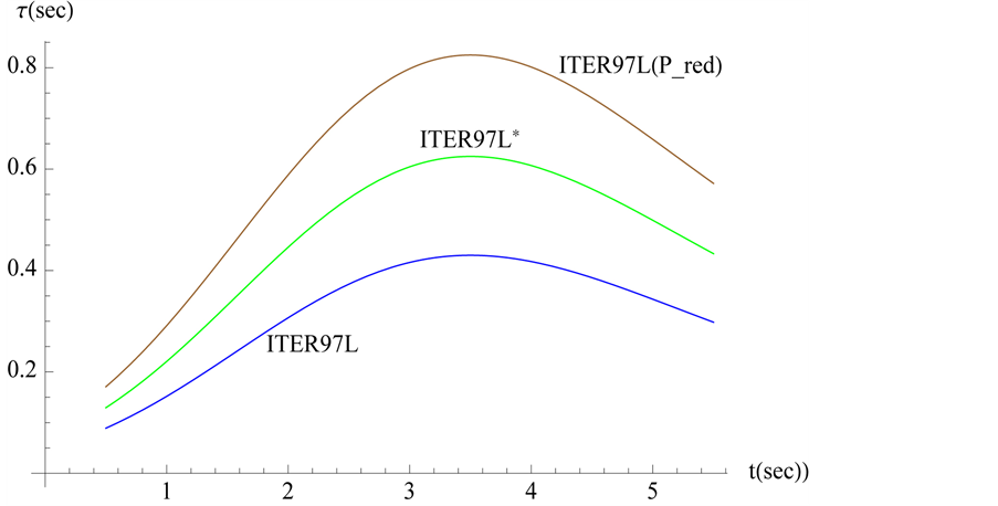 As an example application, we consider in this Section the case of one of the simplest L-mode Tokamak-plasma where the evolution of the energy confinement time has been estimated by solving numerically the balance equations, completed with a transport model. In [20] we find the profile of