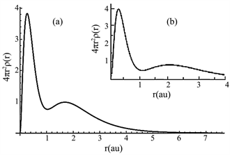Results from the calculations of radial densities of atoms were created images of correspondent plots. Examples of radial density plots are shown in Figure 1 and Figure 2. In Figure 1, we report the radial density plots for beryllium. The inset (a) reports the result from the present calculation; the inset (b) shows the