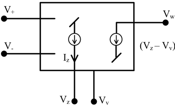 The circuit symbol and equivalent circuit model of the VD-DIBA are shown in Figure 1(a) and Figure 1(b) respectively. The model includes two controlled sources: the current source controlled by differential voltage