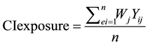 Wj is the weight a single indicator, ei is exposure indicators; Yij is the normalised value of exposure indicator; n is the number of indicators.