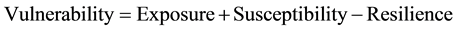 To ensure that the indices calculated for each vulnerability factor can be compared, the sum for each factor of exposure, susceptibility and resilience are divided by their respective number of indicators that describe each vulnerability factor. The composite vulnerability index for exposure factor is given as:
