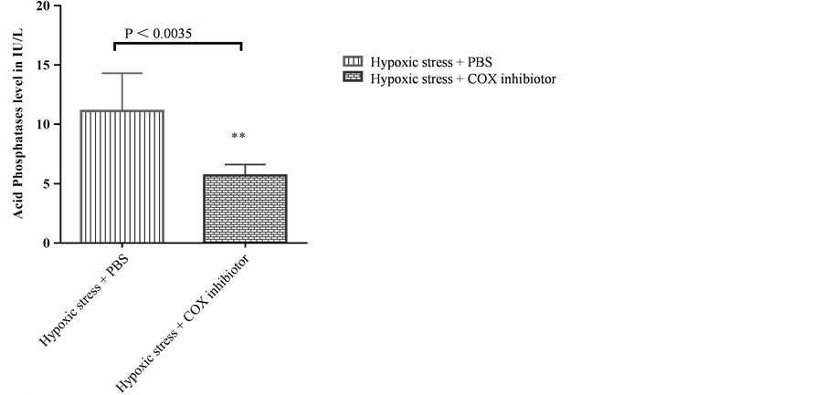 Figure 4. Treatment with non selective COX inhibitor statistically reduced ACP level from. The experiment was repeated 3 times and the SEM determined. n = 3. Error bar represent standard error of mean. ** = P < 0.0035