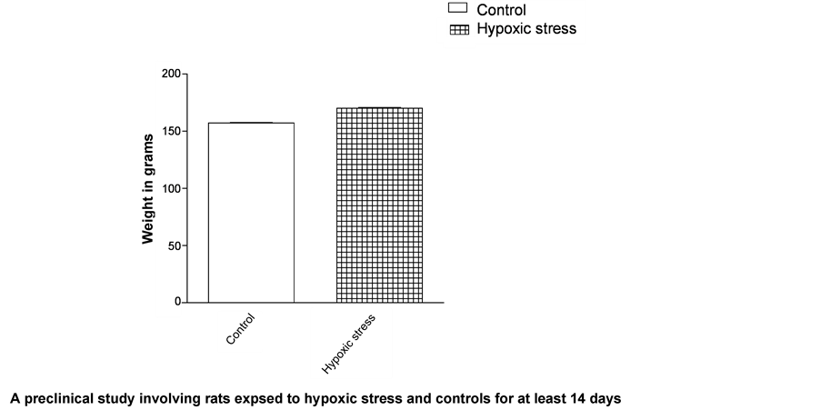 corresponding increase in the concentration of serum tartrate sensitive prostate specific acid phosphatase (P < 0.0001). In tandem, the weight of the animals surprisingly does not decrease, however, the marginal but statistically insignificant increase in the weight (Figure 5) of the hypoxia exposed animals can be attributed to endocrine response to hypoxic stressor. Although we do not understand why weight is not altered, however, it is generally accepted that stress can cause metabolic alterations resulting in initial insulin resistance and increase in some acute phase proteins levels; the extend and duration of which determines if weight will be altered. Evidence