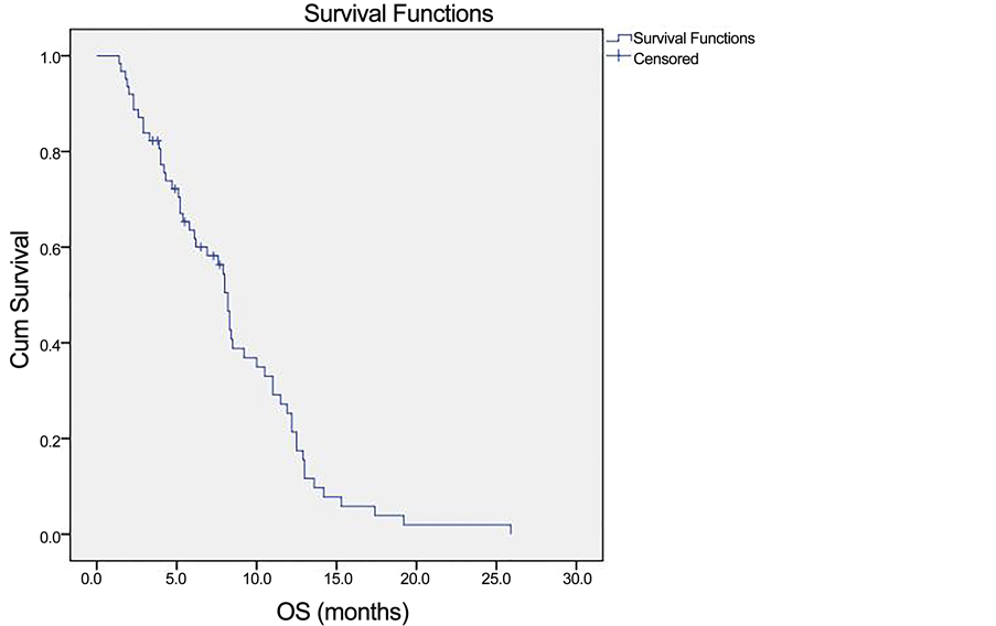 The median survival for all the patients in our study was 8.3 months. The 1year OS and 2 years OS rates were 25.2% and 1.9% respectively. Multiple predictors of survival were identified in this study. The PVTT response was the most significant prognostic factor by both univariate and multivariate analyses in terms of OS. Responders had significant better survival compared to non- responders with a median survival of 12.5 and 8 months respectively. These results are confirming the results published earlier by Kim et al when they found a significant correlation between PVTT response and survival. The median survival which was reported in their study was 15 months for responders and 8 months for non-responders [15] . In this study, performance status as a predictor of survival was found to be statistically significant by both univariate and multivariate analyses. Similar results were published on 2012 by Rim et al. when they correlated between poor performance status and worse survival outcomes [13] .