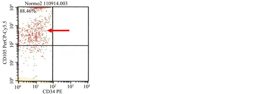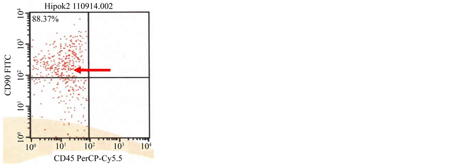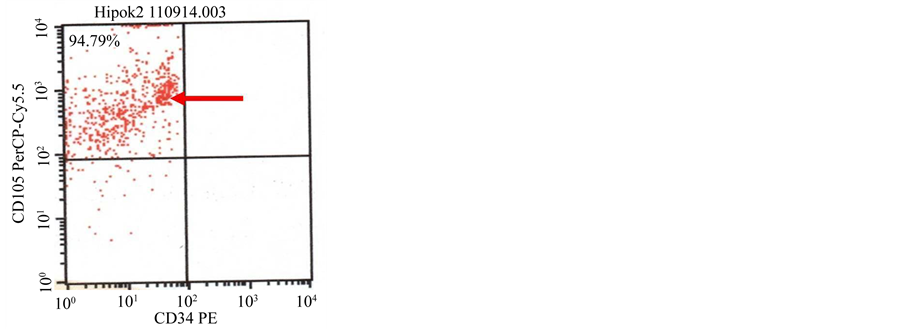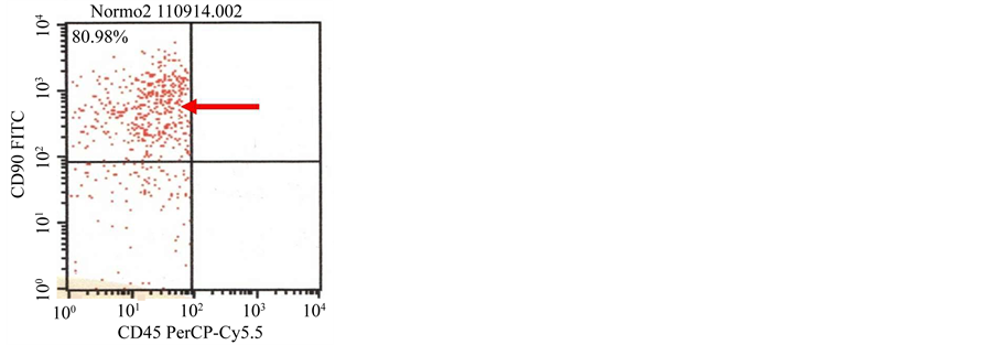 CD73 and cells did not express CD34, CD11b, CD19, CD45 and HLA-DR [29] - [31] . In this research, we used HP-BM-MSCs with expression of CD90 positive (88.37%), 105 positive (94.79%) and N-BM-MSCs with expression of CD90 positive (80.98%), 105 positive (88.46%).