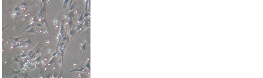 Figure 1. (a) Culture of BM-MSCs on the first 24 hours the cells were mostly round or oval in shape; (b) Culture of BM- MSCs after 3 days the majority of the cells were adherent to the plate, showing spindle-shape with swirling-pattern colonies, and has reached confluence; (c) Culture of hypoxic precondisioning bone marrow mesenchymal stem cells (HP-BM-MSCs) showing spindle-shape with swirling-pattern colonies, and has reached conluence same with N-BM-MSCs (inverted microscope, 200× magnification).