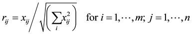 Step 7(b) Normalizing Decision Matrix and Constructing Weighted Normalize Decision Matrix: The decision matrix is normalized according to Equation (10):