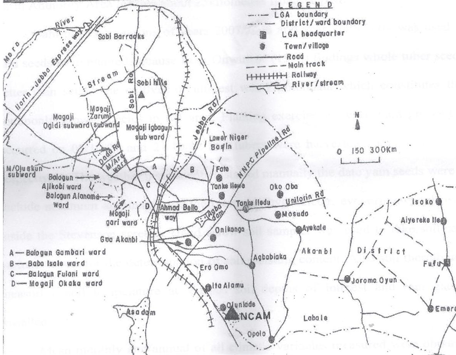 Figure 1. The map of ilorin south local government area showing NCAM the study area.