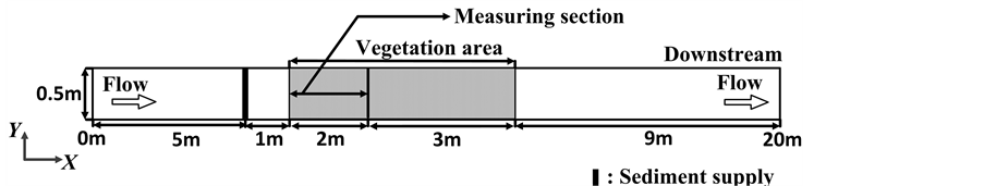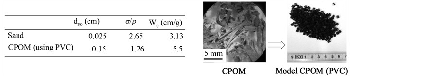 density of sand and water. The presumed amounts of them were fed at 1m upstream of the vegetated area with constant volume along the width. As for CPOM model, we selected PVC (polyvinyl chloride) controlled the specific weight (