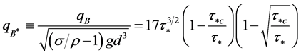 Bed load transport rate has the following relationship with the above two kinds of factors.