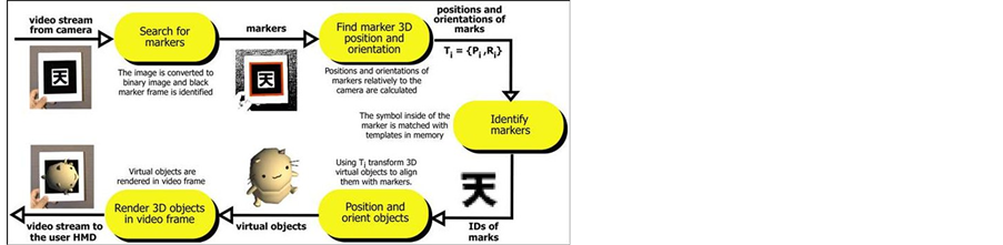 ARToolKit is able to perform this camera tracking in real time, ensuring that the virtual objects always appear overlaid on the tracking markers [2]. Figure 8 summarizes how ARToolKit tracking works.