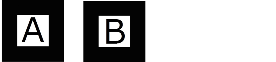 For the purpose of reducing the misrecognition of letters, only the letters which are designated in the question are on standby as markers. Compared with the algorism which all of the 26 letters are active for recognition, the misrecognition rate decreased considerably. Also, we had a problem that symmetrical markers such as letter I, X and O, tend to be tracked upside-down, which causes the malfunction during the collision judgment. We solved this problem by adding two little square in the bottom of such markers, as shown in Figure 11.