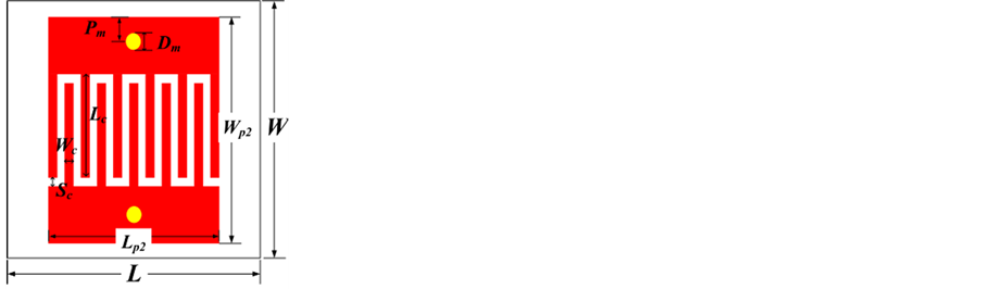 Aim to realize the metamaterial-inspired NFRP electrically small antennas, many designs have been reported in [7]-[23]. The most famous one called “EZ” small antenna [9] [12] [16] [17] generally employs electric monopole or semi loop as driven element and epsilon negative (ENG) metamaterial or capacitively loaded loop (CLL) as parasitic element, but it always seem to be too cumbersome to assemble on aircraft and other unmanned vehicle. Others such as egyptian axe dipole antenna [22] [23], stub antenna, canopy antenna [14], multifunctional and active NFRP antenna [20] [24] are also attracting many interests. Though there have been many structures in designing NFRP antenna, the common point can be depict as that a high radiated efficiency was possible by compensating the large capacitive (inductive) reactance by the inductive (capacitive) reactance of a double-negative (DNG) shell surrounding the electrically small driven element. The inductive (capacitive) impedance offered by the DNG shell was caused due to a change in sign of the reactive part of the complex power radiated by the driven element in an infinite DNG medium. Furthermore, compared to 3D version, the planar printed NFRP ESA has attracted much more attention owing to the advantages such as low profile, high efficiency, ease of fabrication and installation, etc. [21] [22].