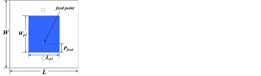 Both of 3D perspective and plane view of the proposed planar electrically small antenna is shown in Figure 1. The new configuration consists of two stacked dielectric substrate isolated by air. There is a rectangle patch on the top of the first substrate with