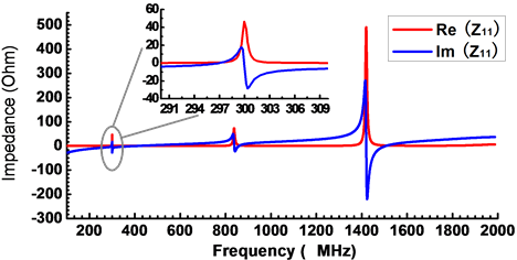 resonance frequency. Not similar to Figure 4(a), one can see from Figure 3(b) that besides the RF frequency 1420 MHz with the impedance value