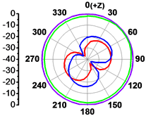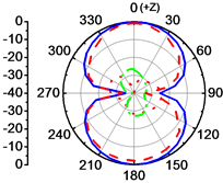 The numerical and experimental radiation patterns of the proposed dual-band antenna operating at 299 MHz and 837 MHz are shown in Figure 10. At 299 MHz, in E-plane [seeing Figure 10(a)] the maximum lies on +Z