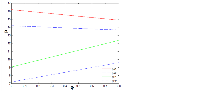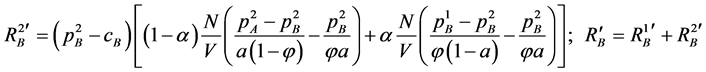 According to consumers’ different demand for product A, B, we can obtain revenue function of firm A, B.
