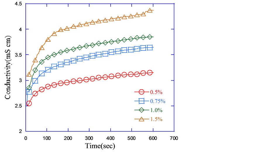 While the temperature of the soya milk increases, the electrical conductivity of the soya milk increases in a positive trend as a result of more ionized subunits [1] [11]-[12]: