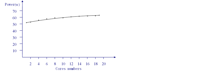 In power test, using a wattmeter to monitor power consumption of different numbers of cores being used, as shown in Figure 3.