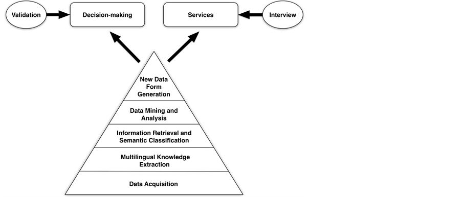 In this section, we propose a framework of linked data based tourism decision support system. Figure 1 describes the proposed platform, including data acquisition, multilingual knowledge extraction, and information retrieval, semantic classification, data mining and analysis, new data form generation, as well as decision support system and services, and interview validation.