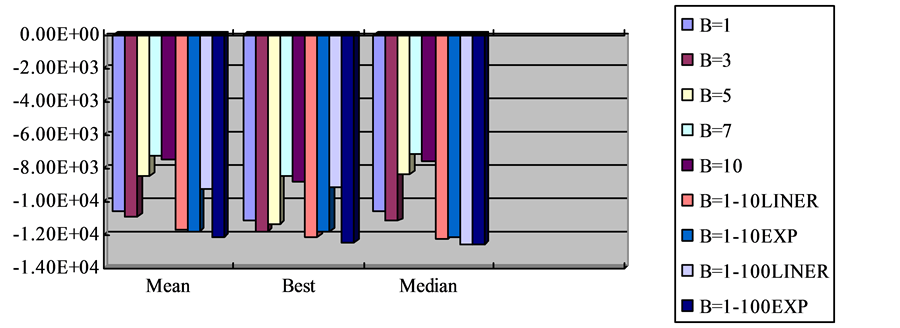 Table 4. Statistical results obtained by MBOA-BIDE with different B values.