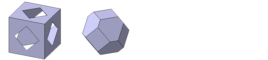 Figure 2. Modified Kelvin model (65%), (a) metal part and (b) pore part (tetrakaidecahedron).