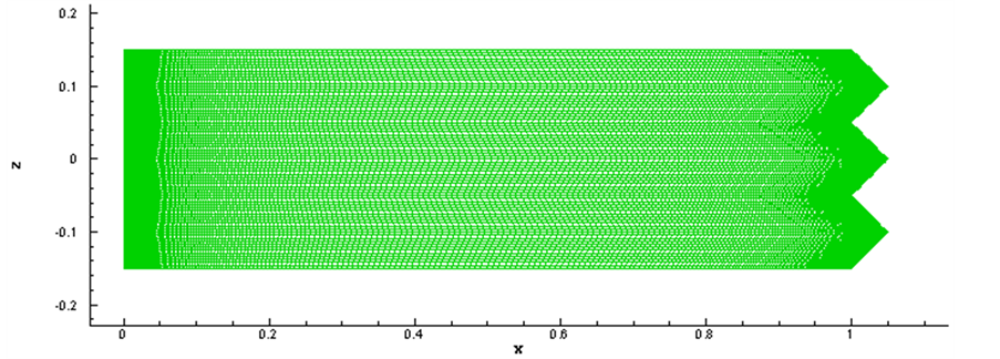 Figure 5. Top view of the wall surface mesh with serrated TE.