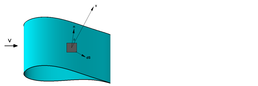 The right hand sides of Equations (5) and (6) are the integrations of time history variables obtained from flow calculations. The variables include wall normal velocity vn, the Mach number of the source in the radiation direction Mr, the pressure on the solid wall surface p, the distance between source and receiver r, the angle between the radiation direction and the local wall normal direction θ. Figure 1 shows a sketch of an airfoil where dS indicates one of the typical wall element that is integrated over the entire airfoil surface. It is obvious that the the angle θ will contribute to the noise directivity. The acoustic solver may run in parallel with flow model, in practice the acoustic solver starts when the flow-field is fully established.